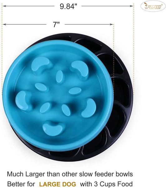 Slow Dog Bowl for Large Dogs,Anti-Gulping Dog Slow Feeder Stop Bloat,2 Pack Slow Eating Big Pet Bowl (F-Black+Blue)