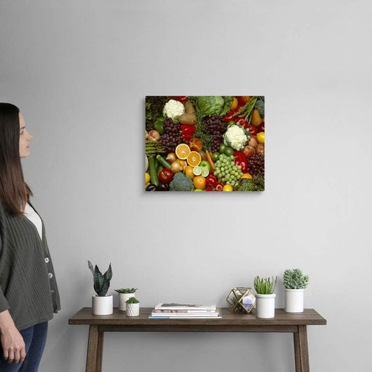 Produce, Spread of Mixed Fruits and Vegetables Canvas Wall Art Print, Home Decor, Wildlife Artwork, 20" X16In
