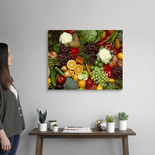 Produce, Spread of Mixed Fruits and Vegetables Canvas Wall Art Print, Home Decor, Wildlife Artwork, 30" X24In